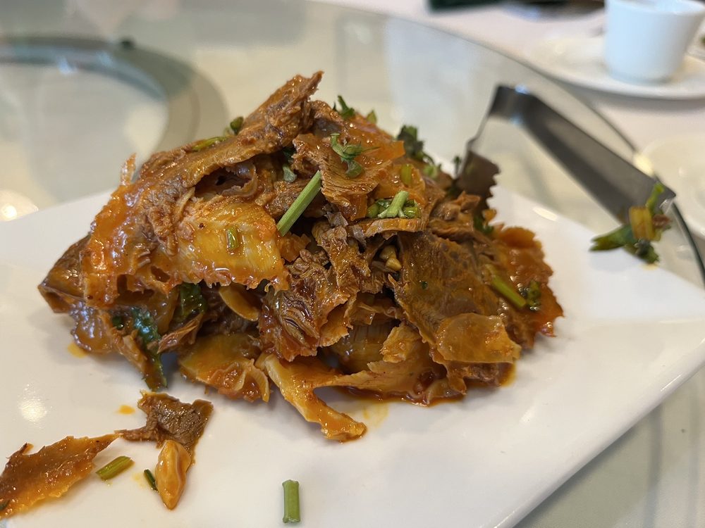 Shredded smoked tender duck sauteed with shredded pickled baby ginger.