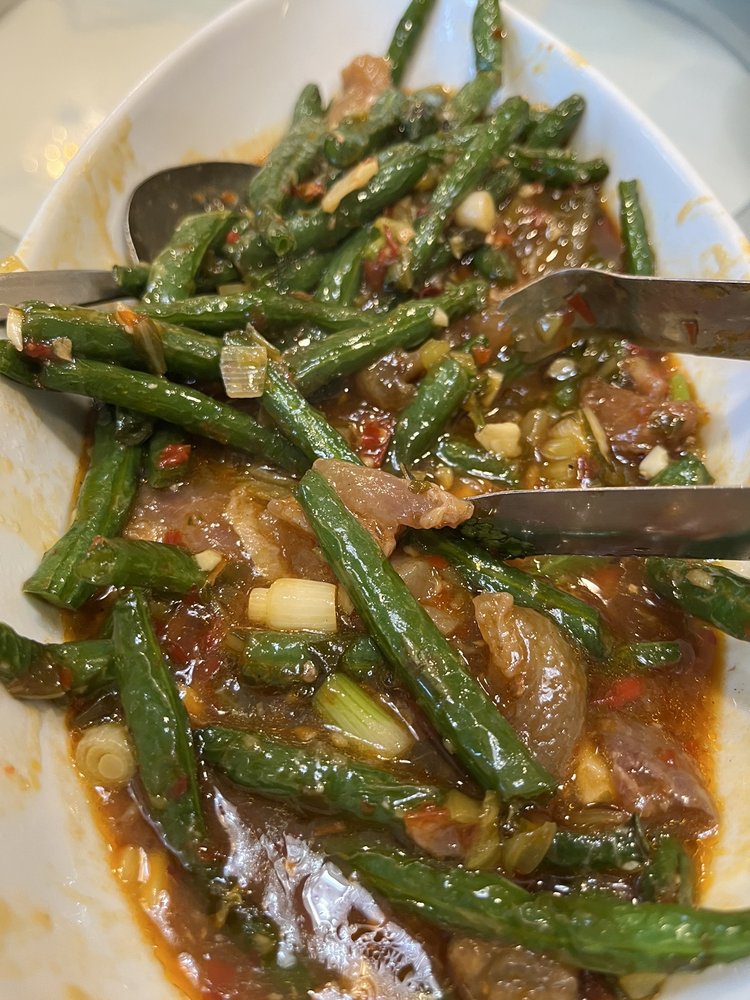Sliced tender lamb and green baby bok choy sauteed with chili. Spicy.